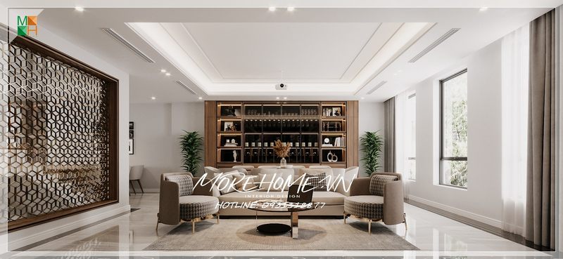 Không gian biệt thự, nhà phố sẽ được trang trí bằng một phòng khách hiện đại và thông thoáng, mang đến một ý tưởng độc đáo.