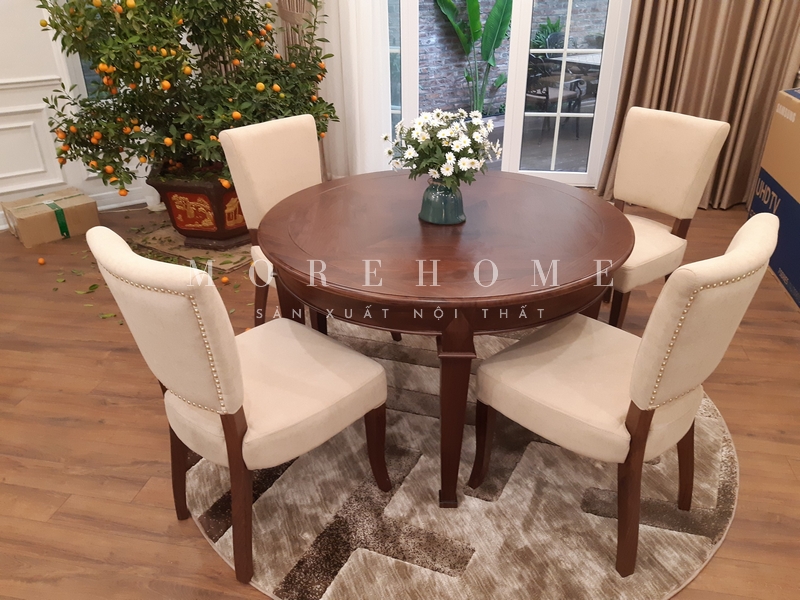 bộ bàn ăn Việc thi công bộ bàn ăn 4 ghế khung gỗ tự nhiên bọc đệm màu be hiện đại sẽ mang lại sự thoải mái và tiện nghi cao cùng với thẩm mỹ thời thượng cho không gian bộ bàn ăn.